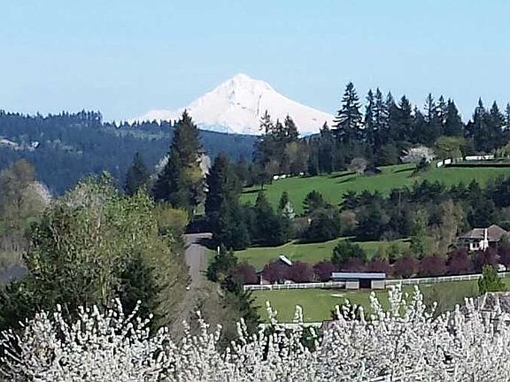 Unique opportunity to purchase stunning views of Mount Hood, a pinot vineyard, award-winning garden on acreage, and custom built all brick home w20 ft entry with a magnificent chandelier, an inlaid stone driveway, tile roof, Pinot vineyard & over-sized epoxy 3 car garage.