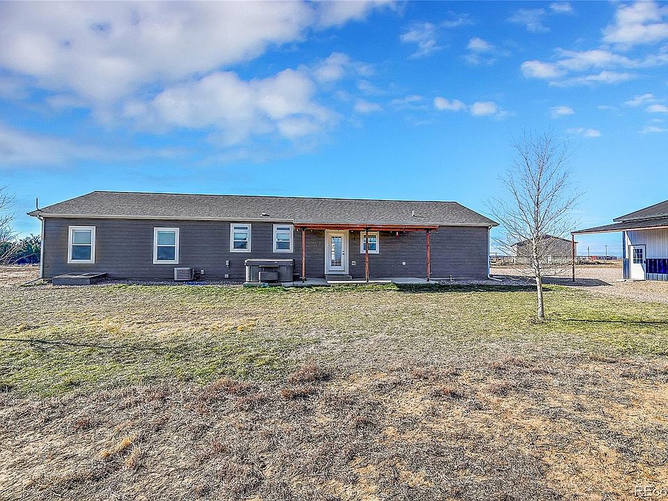 Experience unparalleled country living in this pristine home sitting on 4 acres—without the constraints of an HOA. Step into a bright, open space with soaring ceilings and charming wood beams and overall beautifully designed interior. The upgraded kitchen is a chef’s dream with an incredible amount of space, a double ovens, a large pantry, stainless steel appliances, an expansive island, and a commercial-grade refrigerator and freezer. The primary suite is a private retreat, complete with a spacious walk-in closet, a standalone soaking tub, and a luxurious double shower with a rainfall showerhead. For all your vehicles and equipment, the insulated 1,200 sq ft, 4+ car garage/shop offers ample space and convenience with a pellet stove and Wi-Fi-enabled garage doors. - This home is animal ready- including a fully fenced pasture with a solar electric fence, a tack room, and a run-in shelter with kick boards—perfect for horses or livestock. Enjoy the peaceful surroundings from the hot tub, all while being 15 miles from Greeley