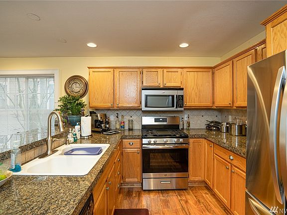 Warm & inviting open concept 4 bedroom, 2.5 bathroom home in the Woodbridge neighborhood. One level living with master bedroom on the main floor, complete with attached full bathroom & walk-in closet. Kitchen, family room, living room, half bath, & utility room also on the main floor. Second level features 3 additional bedrooms and a full bath. Large fenced backyard offers plenty of room for a garden and space to park an rv or boat. Quiet community close to Washington Park, ferries, and town.