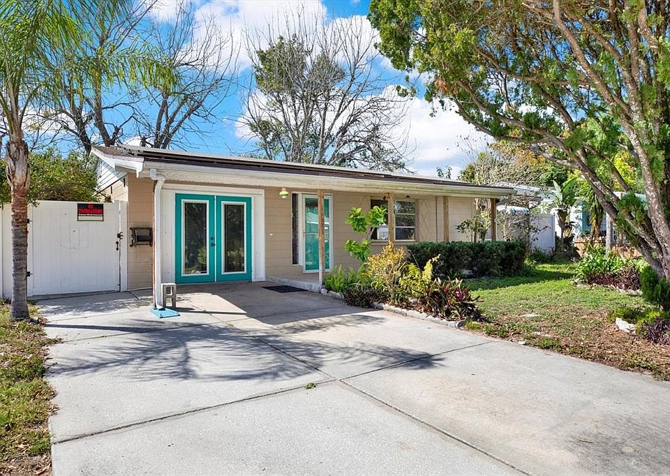 One or more photo(s) has been virtually staged. Discover the charm and practicality of this 2-bedroom, 1-bathroom concrete block home, offering 1,030 sq. ft. of comfortable living space on a 0.12-acre lot with no HOA. Located in New Port Richey, FL, this home features a newer roof installed seven years ago and solar panels added five years ago, helping to reduce energy costs. The closets are lined with cedar, adding a unique touch of warmth and freshness. A separate backyard structure provides flexible space for a workshop, hobby area, or additional storage. Conveniently situated near shopping, dining, and local amenities, this property is ready for your personal touch. Schedule your private showing today!