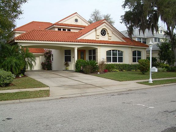 The home is mediterranean style, pale yellow with an organge tile roof and olive green tiled front porch area. It is located in a Nantucket style community on a quiet Cul-de-Sac street. Neighborhood Description The Inlets at Riverdale are touted as one of the premier boating communities on the Gulf Coast with a network of freshwater and saltwater canals and boat lifts. The community itself is deed restricted, well kept, the neighbors caring. A playground and tennis courts are available to residents as are many activities, i.e. Bunko, Ladies Night Out, Bridge Club, Garden Club etc. The community is close to all amenities (shopping, dining, schools, medical facilities - some within walking distance) as well as close to I-75.