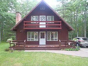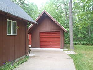 Cedar Lake Access comes with this adorable 3 bedroom Chalet that sits on 4 wooded lots! Chalet has a fireplace in the living room, breakfast counter in the kitchen, 1 bedroom , bathroom and laundry room on the first floor. 2nd Floor has 2 bedrooms, another bathroom and a deck off the front bedroom. Detached garage has room for your car and your toys! Cedar Lake access is just a short walk across the street! House is in MOVE IN CONDITION!