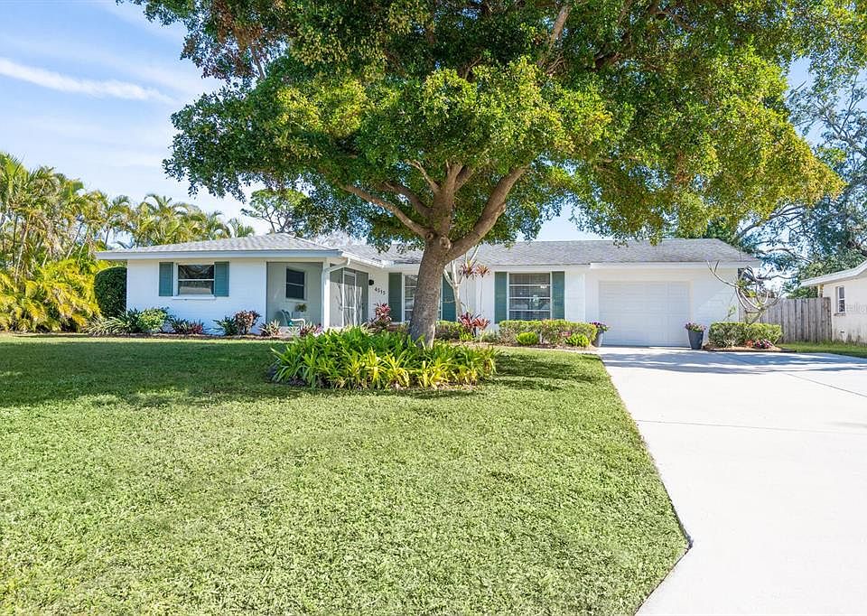 Enjoy a relaxed Florida lifestyle in this one-of-a-kind South Gate Ridge home, a well-maintained lakefront property, with original mid-century details. Whether you're seeking a peaceful retreat or timeless Sarasota classic architecture, this Ruth Richmond home offers the best of both worlds and is located on Lake Thomas in the heart of Sarasota. This spacious, open concept floor plan is move-in ready and includes a vaulted ceiling in the spacious sunroom which is perfect for an in-home office or den. Featuring concrete block construction with an attached oversized one-car garage, this home located in flood zone X, is built to stand the test of time. The private primary suite, also overlooking the lake, includes a large walk-in closet and en-suite bathroom with walk-in shower. Relax with your morning coffee while in your breakfast room watching the numerous species of birds and wildlife. From the screened-in lanai, step into the spacious backyard with tropical landscaping along 76 feet of lakefront, featuring specimen plants, banana trees, and Florida cherry bushes while overlooking the serene lake or fishing from your own private dock - perfect for the nature lover and bird watcher's dream. Additional features include underground utilities, re-piped water lines and relined sewer lines, 2024 hurricane rated garage door and 2025 hot water heater. South Gate Ridge is a great Community with Friendly long-term neighbors within walking or biking distance to Publix, Home Goods, shopping and the Legacy Trail. Conveniently located and just minutes to the famous white Sandy Beaches of Siesta Key. Don’t miss your chance to own a piece of Sarasota’s history—schedule a showing today!