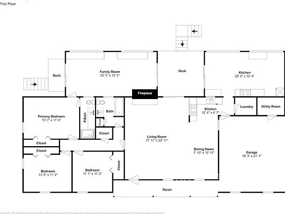 Home Features and Amenities: Air Conditioning, Covered Porch, Deck, Fireplace, Garage, Granite Countertops, Long Lease Terms, Luxury Vinyl Plank, Pet Friendly, Primary Bedroom on Main, Single Story House, Smart Home, Tile, W/D Hookups, and professionally managed by Invitation Homes.