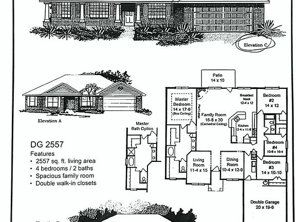 The 2557 floorplan by Adams Homes is a stunning single-story home that offers spacious living areas and luxurious features. With 4 bedrooms, 2 baths, and a two-car garage, this home provides ample space for both relaxation and entertaining. As you enter the home, you are greeted by a grand foyer that is flanked by formal dining and living rooms. Continuing through the foyer, you'll find a spacious and open-concept family room, breakfast nook, and kitchen. The family room is the perfect place to gather with family and friends, featuring large windows that provide an abundance of natural light. The gourmet kitchen is a chef's delight, equipped with modern appliances, granite countertops, and plenty of cabinet space for all your culinary needs. The adjacent dining area offers a convenient space for enjoying meals with loved ones. In the back of the home, you'll find the luxurious master suite, complete with a spacious bedroom, walk-in closets, and a private master bath. The master bath features dual vanities, a soaking tub, and a private water closet, creating a spa-like retreat where you can relax and unwind. Three additional bedrooms with ample closet space and a shared full bath are also located on the opposite side of the home, providing comfortable and private living spaces for family members or guests. A centrally located laundry room adds to the convenience of this floor plan. Outside, a concrete patio extends your living space, providing a great place to enjoy the outdoors and entertain guests. The well-designed landscaping adds to the curb appeal of the home. The 2557 floor plan offers a perfect combination of style, functionality, and luxury. With high-quality construction, attention to detail, and modern finishes, this home is designed to exceed your expectations.