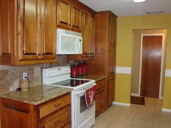 Move-in ready 3/2-0/2 in SW Wichita Falls. Great curb appeal features mature trees. Open living room has laminate wood flooring, vaulted & beamed ceiling, wb fireplace, & French doors to backyard. Kitchen has granite counters, updated appliances, pantry, & custom cabinetry. Dining area has bay window. Large master bedroom & has two closets, & en suite bath w/shower. Spacious hall bath has dual pedestal sinks & shower/tub combo. Low-maintenance backyard has covered patio & large workshop w/worlds of storage.