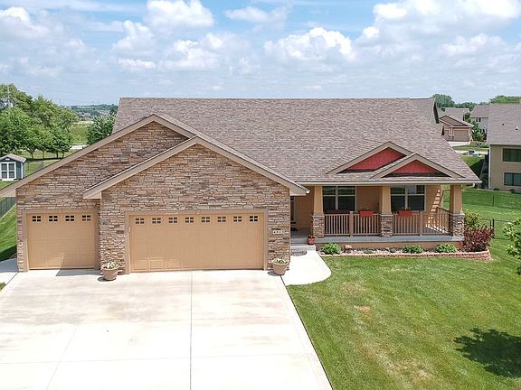 You don't want to miss your chance own this amazing 4-bedroom 3-full bath ranch style home with a finished basement in Northwest Clive. The curb appeal is wonderful with a covered front porch. You'll greet your guests in an entry foyer with a double-door coat closet. They'll immediately notice the wood laminate floors that run throughout the main living area. This space has a vaulted ceiling, lots of windows for great daylight and it includes the living room, dining area, kitchen, and sunroom. The main focal point of the living room is a beautiful stone corner fireplace. The dining area is large, with plenty of room to serve your needs at large family gatherings. It's adjacent to a sunroom that includes a sliding door to a magnificent elevated composite deck with stairs leading to a massive 19' x 19' stone patio that's also above ground level. There's also a concrete slab that's currently used for a hot tub. This entire area is perfect for grilling and all your outdoor entertainment needs. It overlooks a spacious backyard with a lush lawn and many mature trees. You'll really appreciate the irrigation system. Back inside, you'll love the kitchen with awesome granite countertops and a 2-tiered island/breakfast bar. You'll also appreciate the large food pantry. The stainless kitchen appliances are included. The kitchen is adjoined by a combination mudroom/laundry room that exits to a 3 car attached garage with one extended stall. You'll find the carpeted master bedroom on the main level. It boasts an en-suite bathroom with dual sinks, a granite vanity top and a tile surround tub shower combination. There's also a good-sized walk-in closet. There's another bedroom on this level and another full bath. In addition, there's a bonus room secluded behind French doors that can serve as an office/study or as another bedroom. On the lower level you'll discover a large family room with daylight windows. There's a fantastic wet bar with a sensational quartz bar top. The family room has enough space for your favorite game table and a large TV area. There's also another full bedroom on this floor and a full bath with a quartz vanity top and a step-in shower. You'll also appreciate the large unfinished room with built-in storage shelves that stay with the home. This one-owner home is in immaculate condition and offers way more than we can list here. Call today to schedule a showing. You'll be glad you did!