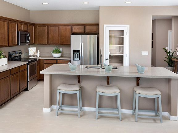 May Completion! Plan 3 in Valencia at Mountain Falls is a beautiful single story floor plan that features 3 bedrooms, 2 bathrooms, a flex room, and 1,984 square feet of living space. The largest of the Valencia floor plans, this home is sure to please. The foyer brings you past 2 secondary bedrooms and the flex room, which will make for the ultimate space to work from home or turn into a playroom for the kids. As you continue through the home, the open kitchen with island and great room becomes the perfect place to gather and entertain family and friends. Enjoy the beautiful Nevada weather from your private outdoor patio or relax in the primary bedroom featuring a private bathroom with double sinks and large walk-in closet. Structural options include: 8' front door, 12' center meet sliding glass door, and covered patio at the great room.