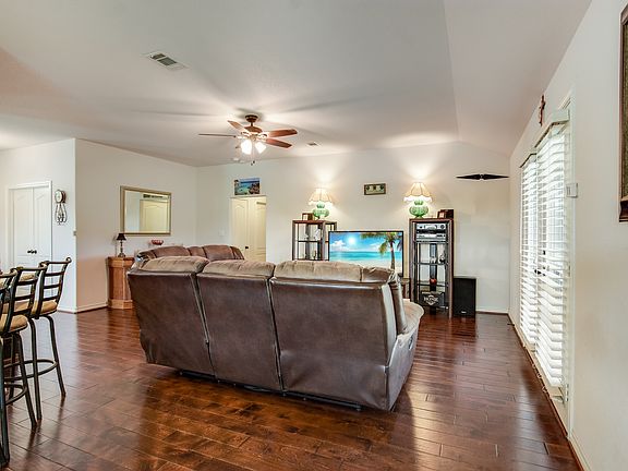 Rare opportunity for country living with modern amenities! Newer construction all-sides brick single story on 11.5 Acres!! Easy AG exemption, 2015 Tilson built 3/2 with all the perks of a newer home. Tankless water heater, water softener, double pane gas-filled windows, faux wood blinds, and extensive hardwood floors. Well is over 600 ft deep w/ pump at 400 ft, automatic gate opener for property entrance, chickens and coop can convey. Large covered patio with ceiling fans and extended deck the length of the home. Extra-wide doorways and hallways are ADA compliant.