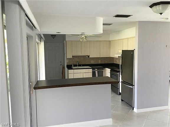 Move in ready, 2 bedroom 2 bath plus den with a two car garage. Professionally landscaped with curbing, newer AC unit, freshly painted inside and 18" diagonal tile throughout. Stainless steel appliances in kitchen, updated master bath and walk in closets in both bedrooms. Large screened in lanai under truss with large fenced in yard. Walking distance to downtown Cape. Close to restaurants, shopping with easy access to Fort Myers.