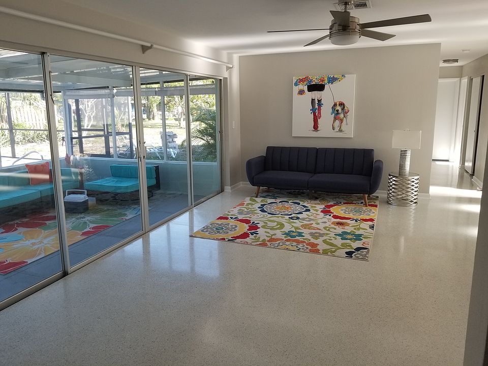 Home has been fully updated with New Kitchen cabinets, counters and Appliances/Plumbing. Bathroom have new Tile, Showers and Vanities. All Hardware is new. Very cool mid-century modern feel to the home. Located within 10 min drive or walk to many restaurants, shops and the Farmers Market. Huge pool with covered outside space fully screened to enjoy our wonderful climate. We have very creative financing options. Its in move -in condition...no repairs needed. This is the lowest Priced 4 bedroom Pool home in Cape Coral. Don't wait until its too late.
