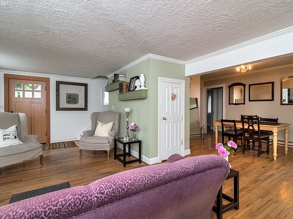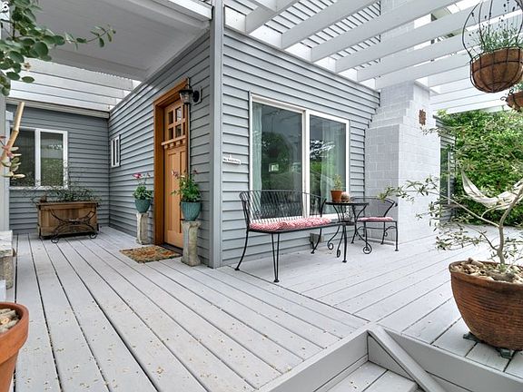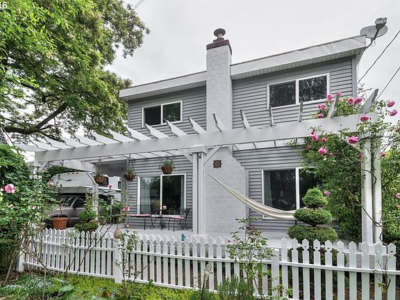 Updated Portlandia style home with welcoming porch & great outdoor spaces. Hardwood floors, fireplace, formal dining room & kitchen w/nook. Large utility room w/ lots of storage areas throughout. 2 bedrooms downstairs, one large bedroom/bonus room upstairs. Lots of room for parking & two car garage in the back. This home has a lot of charm & feels very private - a zen oasis. Walk to shopping one block away.