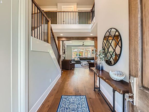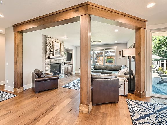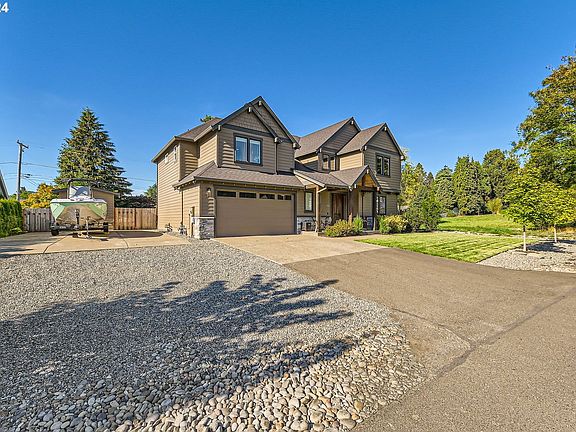 Discover the perfect blend of comfort and entertainment in this stunning property, offering a lot size rarely found in newer homes. Enjoy two beautifully covered outdoor areas, each equipped with TVs for movie nights—let the kids enjoy their film while you relax with yours! A private hot tub adds to the tranquil outdoor experience, and the expansive yard is perfect for hosting gatherings of all ages.This property offers a generous RV space, providing ample room for your boat, motorhome, and a spacious driveway. The tandem garage is perfect for a small workshop or additional storage. This home's prime location places you just 10 minutes from the historic restaurants and museums in Oregon City, as well as 10 minutes from the vibrant farmers markets and local events in Milwaukie. Plus, you’ll have quick access to the MAX, making it easy to get to downtown Portland. Nestled in a quiet neighborhood just one block from the river, you'll also be just minutes away from parks and boat ramps along the Willamette and Clackamas Rivers, offering plenty of recreational opportunities.Inside, you’ll find beautiful wood beams and large windows that provide views of the yard with tons of natural light. The bright kitchen boasts gorgeous quartz countertops over a spacious island, complimented by a gas stove and stainless steel appliances. The open-concept family room features a cozy gas fireplace, perfect for gatherings. Office or play room completes the main floor plan. The primary suite is a true retreat, offering a deep soaking tub, double vanities, and a huge walk-in closet. The other 3 bedrooms upstairs are spacious, light and bright. Double sinks in the main bath with beautiful quartz countertops. With the timber beams and exterior cultured stone accents, this home is stunning inside and outDon’t miss out on this incredible opportunity—schedule your tour today and experience all this home has to offer! OPEN SATURDAY 1-3PM