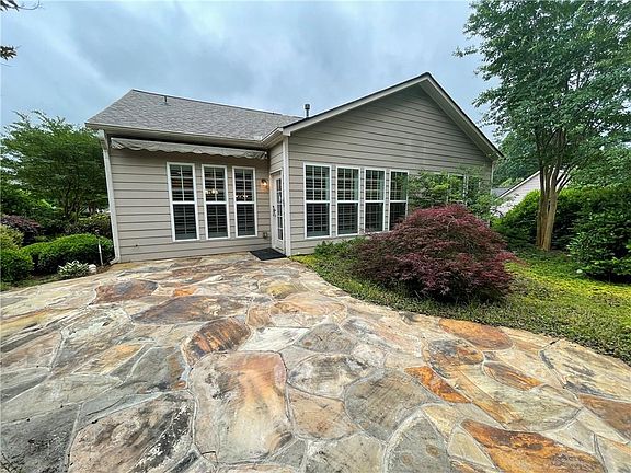 GORGEOUS move in ready ranch home, with beautiful upgrades throughout, in the sought after Fieldstone swim/tennis community, top rated Forsyth County schools with convenience to GA 400, Northside hospital, Big Creek greenway & plenty of shopping & dining at Vickery Village and Halcyon! You're welcomed with an abundance of natural light, tall ceilings, hardwood floors, plantation shutters & a neutral color palette throughout. You will enjoy the 1 level living & open floor plan. Home offers a beautiful large eat-in chefs kitchen w/exceptional stone counter tops, an abundance of cabinetry, desk/task area, pantry, stainless/black appliances & a large island for prepping & gathering that seats 6+. Range is electric, but gas line is available. The kitchen is open to the large fireside family room & dining room that extend to a lovely sunroom to relax in, with views into the very private backyard sanctuary that is complete w/a large upgraded flagstone patio, electric awning & professional landscaping throughout the grounds. Home has 3 generous sized bedrooms, 2 full bathrooms, including the owner's suite that has beautiful upgrades that include a zero entry shower w/seat, soaking tub, double vanities & walk in closet to enjoy. Home has an additional flex room separated with a glass door that would perfect for an office/den/playroom. There is plenty of storage including upgraded ELFA shelving systems in the garage. Home is wheelchair friendly including removable rubber ramps from garage and rear patio, large doorways & owner's zero entry shower. Home offers easy maintenance, w/ a 30 year architectural roof that was added in 2019, beautiful concrete siding, irrigation & lawn maintenance is included in the HOA! All appliances remain with the home, including washer & dryer. Professional photos of the interior & exterior will be uploaded on 5/27.