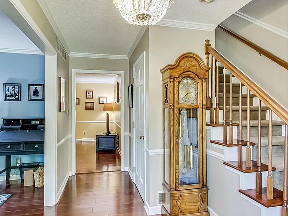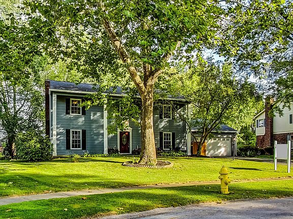 This classic Brookshire Carmel home on quiet cul-de-sac with oversized, private, fully fenced backyard has been updated in all the right ways. With recent kitchen & bathroom renovations, ext paint, gutters, HVAC, electrical panel, and windows all with recent updates, simply enjoy the serenity of your near half acre lot with large covered patio, treehouse, tire swing, swing set & shed, or take a short walk to the community pool & golf course. Or a quiet book by the cozy fireplace. Eng. wood floors throughout & a massive full basement ready for final finishing. Large 2.5 car garage incl work bench & walk up storage perfect for any hobbyist! Four upstairs bedrooms including spa ensuite with double closets. Timeless beauty!
