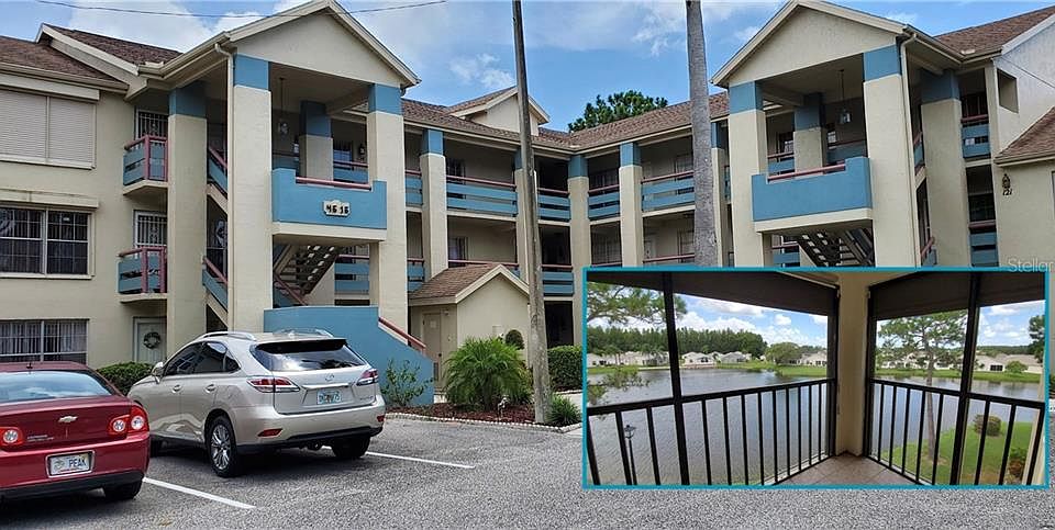 Wonderful 2-bedroom, 2-bath condo in Millpond Lakes, a lovely gated, well-kept community with no age-restrictions where 2 small pets are permitted. You'll love the serene lake view from the kitchen, balcony and master bedroom. You won't have to struggle with arms loaded to your third floor unit since the elevator is right next door to your place. An extra bonus for living on the top floor is the cathedral ceiling in the living and dining room. Laminate is everywhere, but the kitchen and baths which have ceramic tile. You'll even find the lanai has ceramic tile. Off the living room, the second bedroom has double entry doors and mirrored closet doors. With a sofabed or Murphy bed it could still be used as a bedroom but be used as an attractive home office. The lanai or balcony is spacious enough for nice patio furnishings and to protect them you can lower the hurricane shutters, which are for more than just their original purpose. In Millpond Lakes there are only 5 carports, one of them belongs to this unit. The pool is just a very short walk away, and residents of Millpond Lakes have access to the larger, heated pool and hottub at the gorgeous clubhouse. No need to keep that gym membership when you can workout at the community fitness center in the active clubhouse. Conveniently located to great shopping, restaurants, hospital, and so much more. Millpond Lakes is an easy commute to Clearwater and Tampa since the Suncoast Parkway is about 15 minutes away. Busch Gardens, or the world renowned Clearwater Beach are approximately an hour away.