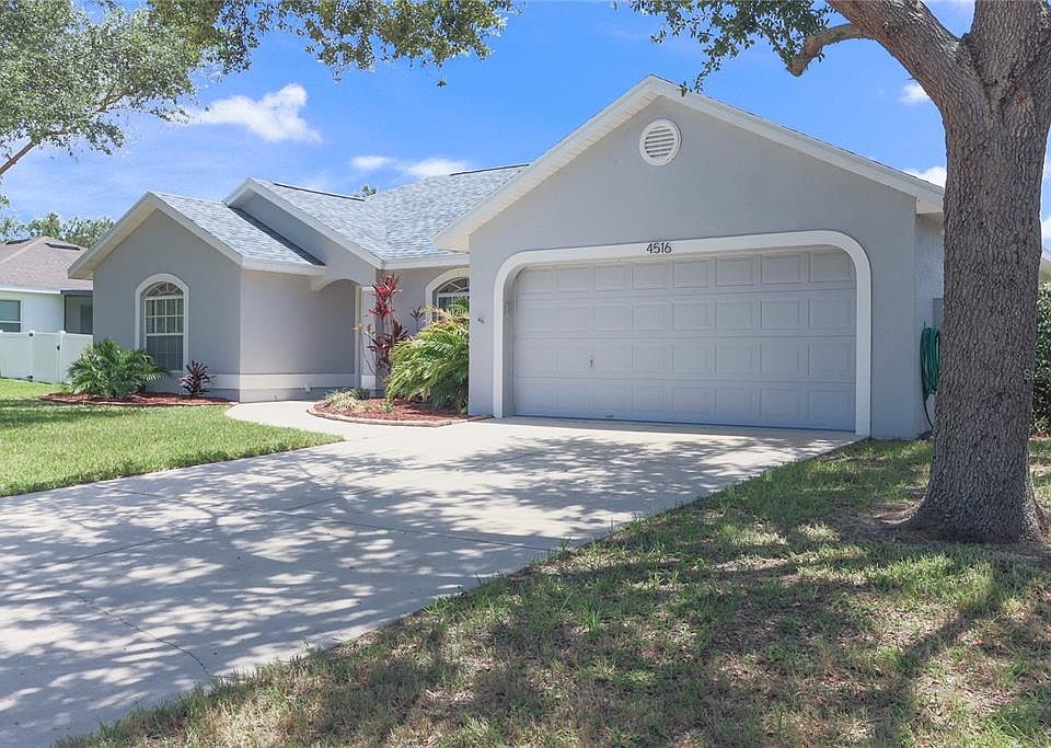 Welcome to the peaceful neighborhood of Sugar Mill Lakes in Palmetto.  This home has 3 bedrooms, 2 bathrooms, 2 car garage, and an open floor plan with vaulted ceilings in living room.  Brand new Roof and AC.  Newly added high quality, beautiful epoxy resurfacing on kitchen countertops and bathroom vanities. Over a quarter acre lot includes large back yard with plenty of room for a pool.  This community has low HOA fees and no CDD.  It includes a park, tennis and basketball courts, and playground.  Exterior of home painted in 2019, and interior in 2020 along with kitchen cabinets.  The neighborhood is convenient to I75, I275, Downtown Bradenton, Sarasota, and the Gulf Beaches.