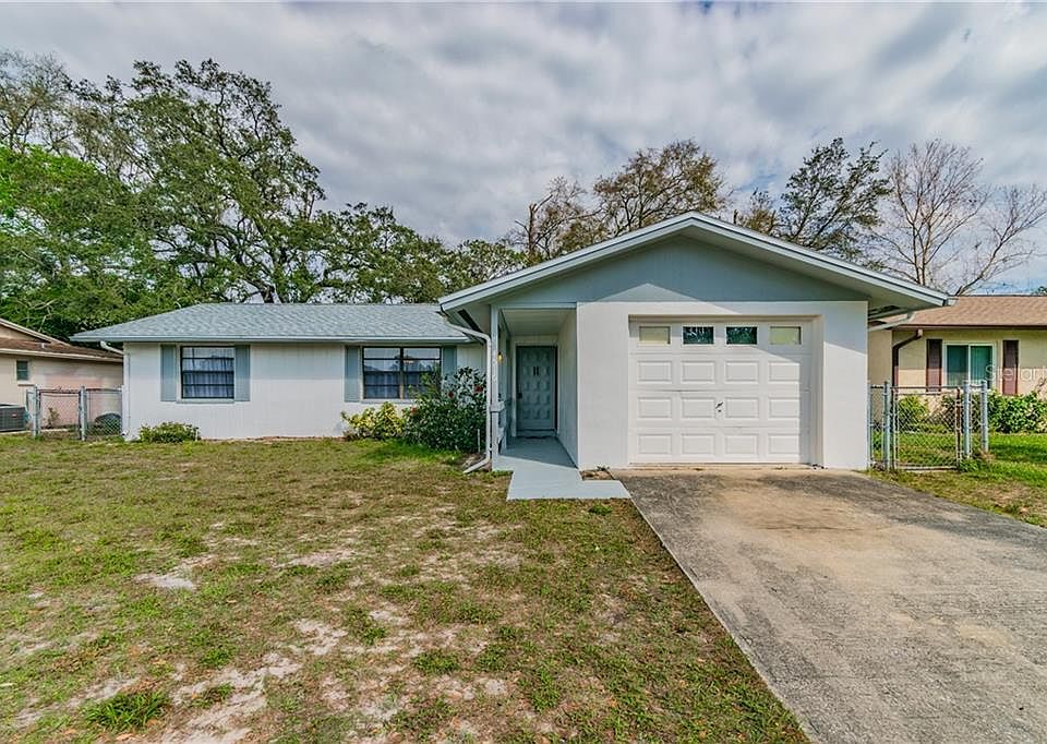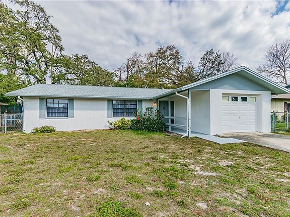 WELCOME TO YOUR PIECE OF PARADISE at 4516 Ackerman St, New Port Richey in the sunny subdivision of Holiday Gardens Estates. Your MARVELOUS 2 bed, 2 bath, 1 car garage home is located in a no-flood zone, no HOA or CDD. Key exterior features are BRAND NEW ROOF (2/2020), fresh exterior paint in neutral 2-tone colors, rain gutters, covered front porch, screened lanai, shed for your garden tools, FULLY FENCED yard & easy breezy TROPICAL landscaping. You'll LOVE the CHARM of the front door & added bonus of the screen door. BRAND NEW carpet & vinyl tile in kitchen, baths & laundry room are AWESOME features as well as fresh paint in a COOL hue of gray. The open floor plan consisting of the kitchen, living, dining, & family rooms are BRIGHT & CHEERY because of the NATURAL SUNSHINE streaming through the multiple windows. The updated kitchen features plentiful cabinets, breakfast bar & classic 4" tile backsplash. Retreat to your master bedroom with a private bathroom containing a step-in shower, modern vanity & bright light fixture. In a split bedroom plan, the other bed is located on the opposite wing of the home & can easily accommodate king-size furniture. The full guest bath nearby features tub/shower combo & updated vanity. Enjoy the salty breezes in your private screened & covered lanai. The laundry room with an exterior side door is located in the partially converted garage. A small vehicle will fit in the garage. This PHENOMENAL HOME is truly move-in ready & priced to sell. MAKE THIS YOUR FUTURE HOME.