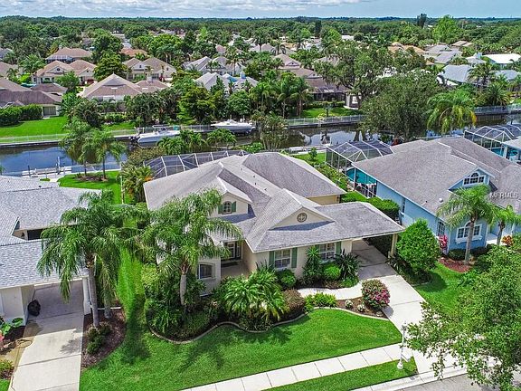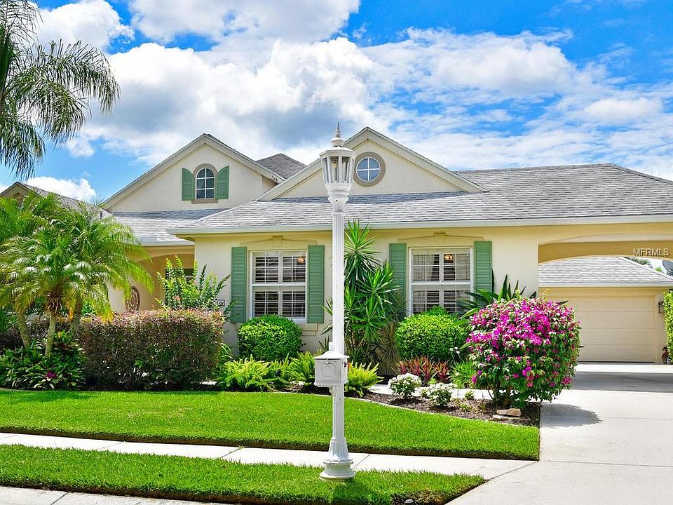 LUSH TROPICAL LANDSCAPING surrounds this Palm Beach style home located in Bradenton's Premier Boating Community, The Inlets. Spacious 4-bdr, 3-BA, 2346 sq. ft. Intrepid model offers a split floor plan, southern exposure & private backyard dock to cruise the FL waterways, secret fishing spots, waterfront restaurants & local islands. Tropical colors of nature welcome you to the double glass front doors with light & bright sidelights into the tiled entryway. Flowing living spaces showcase the corner sliding glass doors to oversized lanai ... spend lazy afternoon after a day of boating sipping your favorite libation & floating in your tropical sparkling heated pool. Well-planned kitchen includes granite countertops, crown molding, SS appliances, cabinets w/decorative glass inserts & breakfast bar. Impressive features include BRAND NEW ENERGY EFFICIENT TRANE A/C (2018), security system, hurricane garage door, plantation shutters, new light fixtures & large fenced yard for your four-legged friends. Luxurious master suite w/soaker tub, separate shower has double sinks & new ceramic tile. Come join the Inlets, a friendly award-winning boating community w/waterfront park, canoe/kayaking, playground, tennis, boating, fishing, community events, low HOA fees, no CDD fees. Just 6 nautical miles to Tampa Bay, 12 mi to Gulf. Close to major airports, sporting events, theatre, Riverwalk, fine dining, Prime Outlet Mall, new UTC Mall, sandy beaches, convenient to I-75, Sarasota, Tampa, and St Pete. Your SALT LIFE awaits!