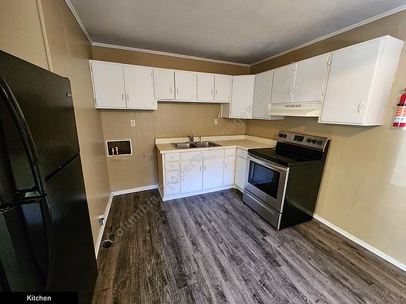 Three bedrooms. One and a half bathrooms. Living room. Eat-in kitchen with refrigerator and stove. Washer and dryer connections. Central heat and air. Vinyl plank floors. Pet restrictions. Carport and off-street parking. Large yard. Storage closet. Tenant responsible for all utilities and yard maintenance. Three bedrooms. One and a half bathrooms. Living room. Eat-in kitchen with refrigerator and stove. Washer and dryer connections. Central heat and air. Vinyl plank floors. Pet restrictions. Carport and off-street parking. Large yard. Storage closet. Tenant responsible for all utilities and yard maintenance.