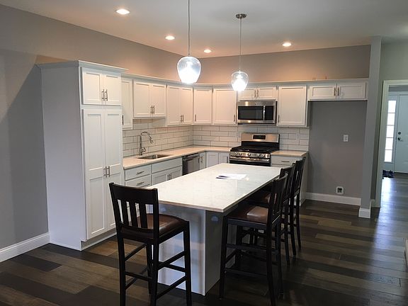 Condominium has 1,625 finished square feet total on the main level with 3 bedrooms, 2 full bathrooms, large family room, dining room/office space, kitchen AND unfinished basement with bathroom plumbing stubbed out. Both main level and basement feature 9 foot ceilings. Contact: Sherry Leischner, Property Owner Details: - Master bathroom features custom tile shower and heated floors - Tile in bathrooms and laundry room by Arizona Tile - Master bedroom with large walk in closet - Kitchen with full thickness QUARTZ countertops and large island by Modern Countertops - Custom designed cabinetry with soft close feature - Popular white subway tile featured in kitchen - GE gas range, dishwasher and microwave - Bamboo floors ( featuring lifetime warranty) in entryway, dining room/ office, kitchen, living room and hallways. - Carpet professionally installed by Calhoun Carpet - Private center divided back yard - Front, back and side yards sodded by Pedigo - Anderson silver line windows - 2 car garage with remote opener - High efficient gas furnace and air conditioner - Quality lighting provided by Marx Fireplace and lighting - Concrete poured by Creswell - Sump pump pit and pump installed in basement to discharge water to rear drainage easement - Egress windows in basement living room and bedroom (unfinished) - Double stacked drywall for extra noise reduction between condos - Basement has plenty of storage space - Chatham School District Contact Sherry Leischner at LeischnerHomes@gmail.com