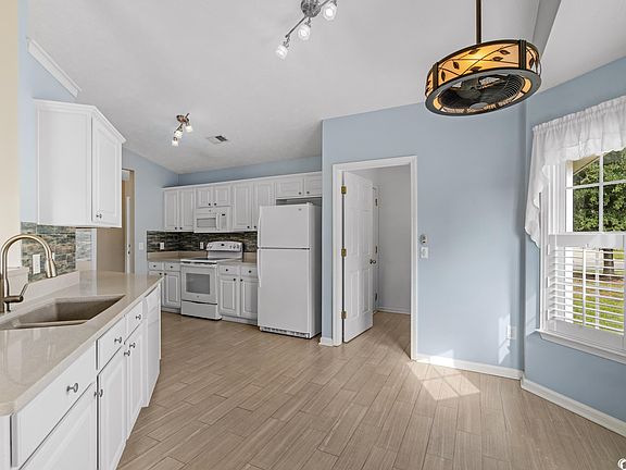 Walkers Woods is a charming community located in the Carolina Forest area of Myrtle Beach. Carolina Forest is coveted for its' fantastic schools, awesome local restaurants and shopping what more could you ask for. and Walkers Woods offers so many lifestyle conveniences from a walking trail, to recreational areas with playground, 1/2 court basketball and outdoor swimming pool you truly have it all. This adorable home features 3-bedrooms and 2-bathrooms with a picturesque view of a tranquil pond. The yard is well-maintained with lush landscaping, and offers a neatly fenced-in backyard. Upon entering the home, you'll be greeted by a spacious and welcoming atmosphere. The ranch-style layout offers easy accessibility and a comfortable flow throughout the home. Corian countertops offer both durability and elegance, the sea blue tile backsplash adds a pop of color and personality to the space, and an "eat-in" kitchen, provides ample space for a dining area, perfect for casual family meals or entertaining friends. The living room and dining room both feature cathedral ceilings, giving these spaces an open and airy feel. The living room is a cozy gathering spot while the adjacent Carolina room is versatile and can be used as a sunroom, a home office, or simply a relaxing retreat. With large windows offering views of the backyard and pond, it's an ideal place to unwind and enjoy the natural surroundings. The pond view from the large windows, tray ceiling with the breezy ceiling fan creates a relaxing escape in the master bedroom. The master bath bosts a walk-in shower and vanity. On this same side of the home are the two additional bedrooms and a full bath with a tub/shower combo. This ranch-style home in Walkers Woods provides a wonderful blend of comfort, style, and functionality. With its pond view, fenced-in backyard and open living spaces, it's a perfect place for buyers looking for a peaceful and welcoming community in Carolina Forest.