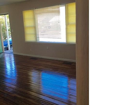 Vinyl siding, nice hardwood floors just refinished, big backyard. This is a great solid starter home.