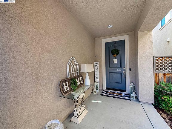Immaculate East facing single family home in the desirable Sorrento community. The main floor offers an open concept with high ceilings, luxury vinyl flooring living, dining room and gourmet kitchen with granite counters, large island with counter seating and walk-in pantry. SS appliances include LG refrigerator, Whirlpool dishwasher, gas stove and built-in microwave. The 2nd floor consists of a large primary suite with oversized bathroom including quartz countertops, oval tub, separate shower and large walk-in closet plus two secondary bedrooms and a hall bath. The 3rd floor is currently a home theater which includes ceiling mounted projector, drop down screen, surround sound speaker system and attic storage. This is a builder option 4th bedroom, bonus room or office. The extended driveway offers add'l parking for 3-4 more cars. Professionally landscaped back yard with tile patio, lawn area, planter boxes, retractable awning and fully outfitted outdoor kitchen with BBQ, refrigerator, gas stovetop and pergola. Finished 2 car garage with overhead storage racks and refrigerator included. Just 2 minutes walk to the Sorrento Community clubhouse, pool/spa and fitness center. Because this home has so many upgrades and amenities that are included in the sale...it's a must-see!!