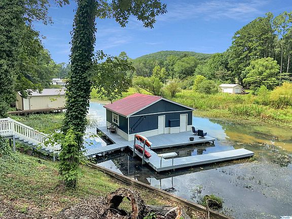 NEW PRICE!!! Looks like a modest cottage, but appearances can be VERY deceiving. This 3200 sq ft waterfront home in Guntersville is a gem, polished to perfection by owners with wonderful taste and a passion for entertaining. Just wait till you see the covered deck and outdoor chef's kitchen, the hot tub, the projection system with retractable screen... And if you're looking for a weekend/vacation home you can move right in. Home is being sold FULLY FURNISHED with all appliances. Master bedroom is sumptuous, a perfect retreat with a vaulted ceiling, great closets, and a master bath with a jetted tub and double vanity. Home warranty included. Come see it today!