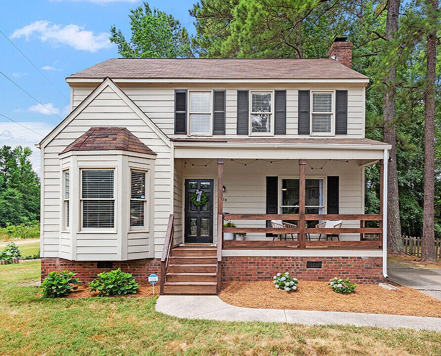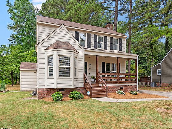 This charming 3-bedroom, 2.5-bath home has been thoughtfully updated for modern living. The recently updated deck and the new front porch were completed in 2023, while the entire home, inside and out, received fresh paint in 2021. The kitchen boasts quartz countertops, a stylish tile backsplash, and new appliances, including a dishwasher, stove, and refrigerator, all installed in 2021. All light fixtures and ceiling fans were replaced in 2021. Bathroom updates include new vanity tops in the primary and half baths (2021), new vanity in the guest bath (2021), and new toilets (2021). Enjoy the oversized family room with a wood-burning fireplace and a separate dining room. The HVAC was replaced in 2022, the roof in 2020, and all flooring throughout the home was updated in 2021. This home is conveniently located near 540 and Triangle Towne Center and offers both comfort and convenience. Plus, the refrigerator and shed in the backyard convey with the home. Don't miss out on this fantastic opportunity to own a beautifully updated home in Raleigh.