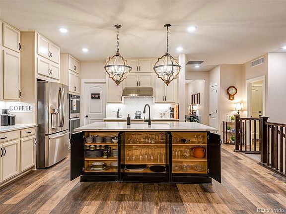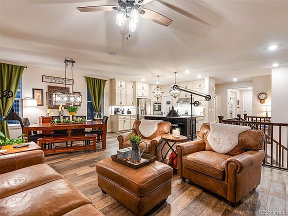 Stunning ranch KB home built in 2020 in the Copperleaf neighborhood loaded with all the extras! Wait until you see the inside! Upon entry notice the luxury vinyl that flows throughout in the main level including the office with a peek-a-view shot of the mountains. Office could be converted to a fourth bedroom if desired. Continue past the half bathroom and laundry room to the open concept heart of the home with the gourmet kitchen, bright open family room and spacious dining room. Kitchen has been tastefully upgraded with dovetail cabinets, pull out shelves, soft close technology, under cabinet lighting, extended slab quartz counters, oversized island, wifi enabled oven with air fryer capabilities, stunning stacked cabinets, walk-in pantry, 36" electric stovetop. Family room enjoys a cozy gas fireplace with decorative mantel. Step into the main floor primary bedroom with high ceilings leading to a fantastic primary bathroom boasting a walk-in shower with upgraded tile, two linen closets, dual sinks, quartz counters and more. Primary bathroom leads to walk in primary closet. Finished basement has two spacious bedrooms, a full bathroom with stunning tile floors. Perfect entertaining and gaming space in the remainder of the finished basement. Unfinished portion of the basement for storage or can be finished as desired. Entire home has been upgraded with no detail overlooked. Upgraded baseboards and trim throughout home. Enjoy the composite covered deck at the end of the long day. Landscaped yard with sprinklers and fully fenced. Two car extended depth garage. Copperleaf is a wonderful community with access to pool, clubhouse, tennis courts, parks, dog park and community events. Easy access to E470 and a short drive to DIA or downtown Denver. POTENTIAL assumable 2.5% loan for qualified veteran.