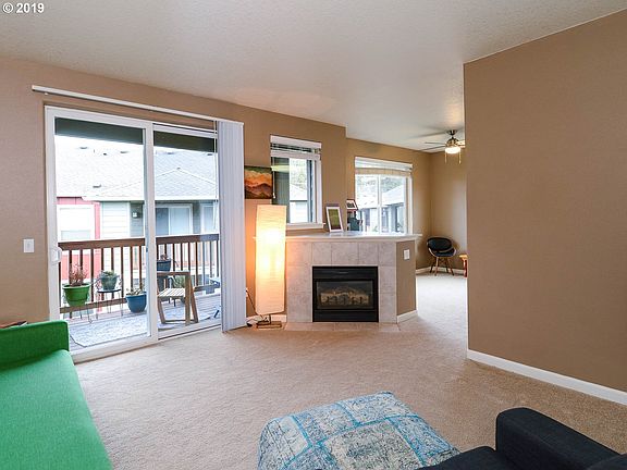 Beautiful 2 bed/2 bath end unit w/ 9' high ceilings, south facing windows & amazing natural light. Gas fireplace, brand new A/C, large master suite. Attached garage has extra storage. Private entrance to Springwater Trail, listen to bird calls from the large covered balcony. Quiet complex includes pool, hot tub, work-out room. Near grocery store & restaurants.