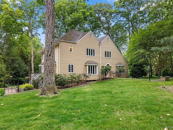 Fabulous Transitional home built in 1987 situated on beautiful, private 0.68 acre. First floor open and bright. Vaulted ceilings in Living Room and Family Room[fireplace]. Formal Dining Room. Glorious two-story Morning Room. Kitchen needs updating but wonderful space with Breakfast Bar, Pantry. First floor Bedroom/Office with built-in bookcases access to Full Bath. 2nd Floor: Large Primary Bedroom with 'walk-thru' closet and additional double closet. Primary Bathroom. Two additional bedrooms. Hall bath. Wood Floors throughout 1st and 2nd floors. Finished large L-shaped basement area opens out to spacious Brick Patio. Full Bath and Laundry Room complete this level. Walk-up fully floored Attic with expansion potential. Newly refurbished deck off Family Room. Brick walkways. Numerous cobblestone lined garden areas. Short walk to the river.