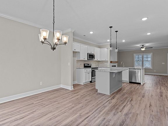 Custom Built RANCH PLAN! Luxury Vinyl HWD Style Flooring Throughout Main Living! Upgraded Lighting & Hardware Throughout! Kit: Granite CTops, Flat Panel Painted Cabinets, Peninsula & Center Island w/Breakfast Bar & Pendant Lights, Tile Backsplash, SS Appls Incl Smooth Top Range, MW & DW! Pantry w/Cstm Shelving! Open to Breakfast Area w/Slider to Rear Grililng Patio! Owner's Suite: Plush Carpet, Crown Molding, Ceiling Fan w/Light & Spacious WIC w/Cstm Wood Shelving! Owner's Bath: Dual Vanity & Walk in Shower! FamRm: Crown Molding, Linear Electric Fireplace w/Shiplap Accent Surround & Stained Mantle & Ceiling Fan! Laundry w/Custom Wall Cabinets!