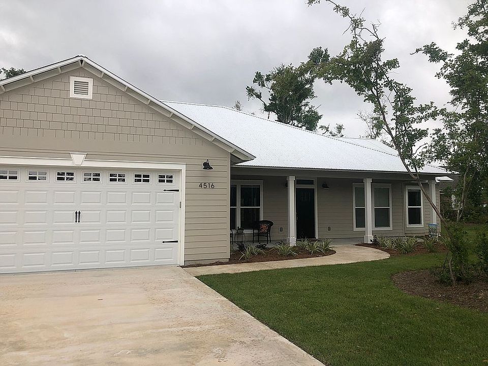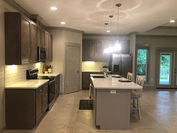 Beautiful new craftsman style home has 4 bedrooms and 2 full baths. Large open floor plan with spacious rooms and closets. It features corrugated metal roof with exposed rafter tails. Oversized porches with tongue and groove on the ceilings. Norris Grey color cabinets with quartz countertops throughout. Crown molding in main living area and in the 3 ceiling trays. Ceiling to floor tile in master shower. Nickel gap on the kitchen island and electric fireplace. Large laundry room with upper and lower cabinets. Stained concrete in main living area. The Lot 57 is a large .893 acre wooded lot with big oaks, pines, and some magnolia trees. It is high and dry with walking distance to Deerpoint lake. This gated community has lots of fun aminities which offers a clubhouse with a paved walkway to the lake, big screened in porch, fire pit, a kitchen with large family room to entertain. The Summer house has a pool, playground and a grilling area.
