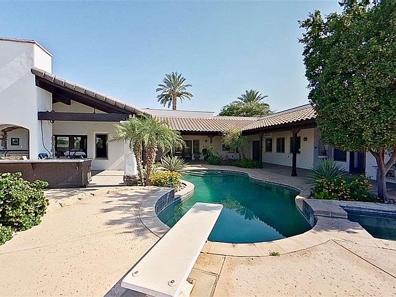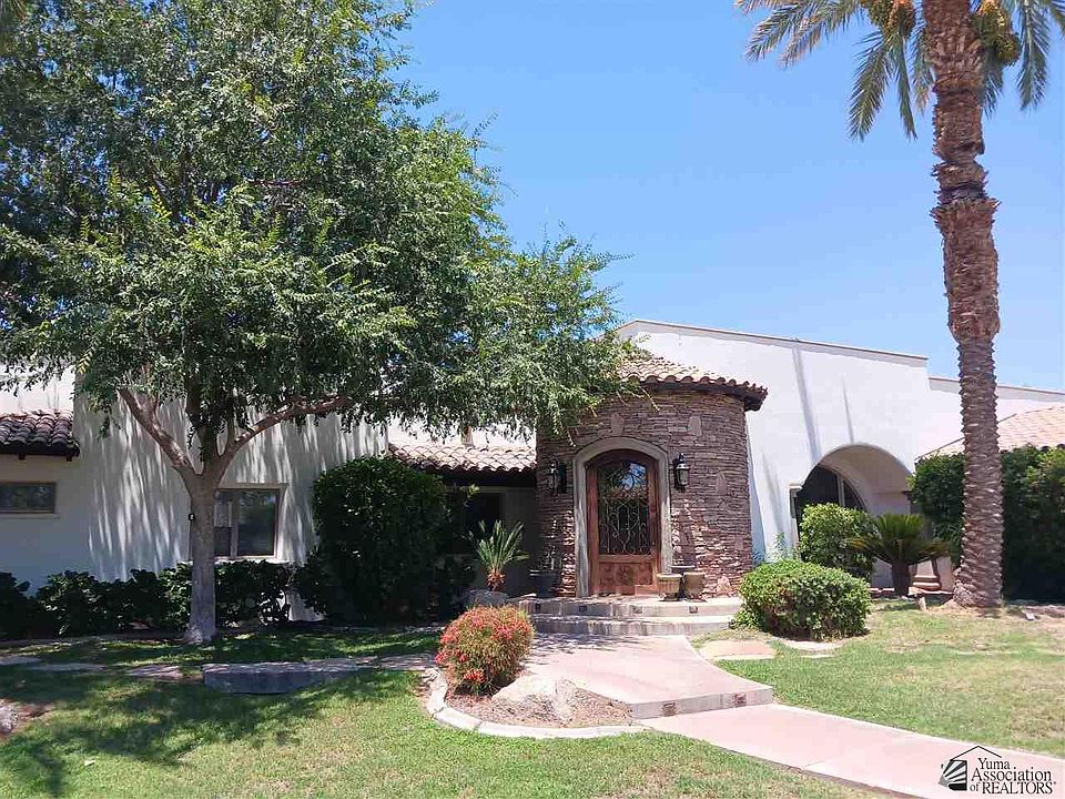 This one of a kind, single story unique custom Spanish architectural home is located on a quiet cul-de-sac in Yuma's very desirable gated community of Barkley Ranch Estates. Enjoy the view and start your day with an epic Yuma sunrise. This beautiful home is perfect for hosting your next gathering of family and friends with oversized rooms and elevated ceilings. A large covered patio is a backdrop for your backyard oasis which includes swimming pool, jacuzzi, outdoor kitchen, mature citrus trees and garden beds.