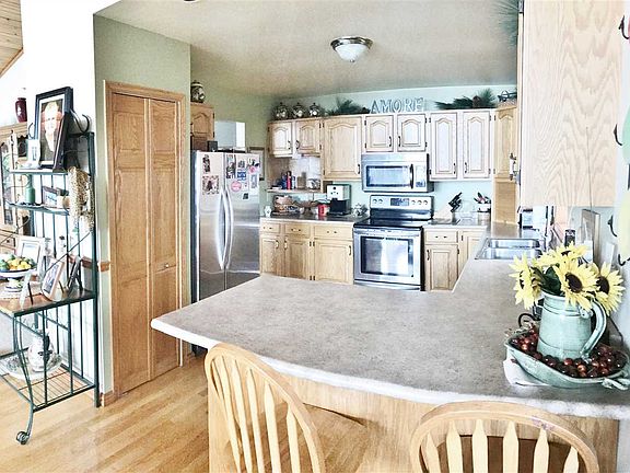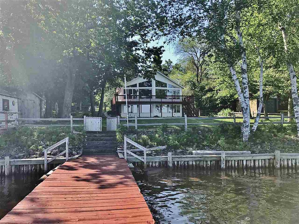 This is a gorgeous home, built in 1994 with a large addition in 2006, will give you both the convenience of a well-cared, lightly used home and the lovely waterfront so many crave. Enter into the huge living room with prow windows giving you a 180 degree view of Portage Lake. A Vermont Casting propane stove adds coziness for those cool evenings. This room has cathedral ceilings covered in tongue and groove knotty pine. The dining area is incorporated into the living area and features a gorgeous hardwood floor. The kitchen has plenty of cabinet and counter space, a snack bar and nice stainless appliances. 2 bedrooms with nice closets, a large bath with tiled walk-in shower and laundry area complete the main floor. The basement is a walkout, again with big views of the lake from the enormous family room. A propane gas fireplace centers the room. A bedroom with closet and a lovely bath with shower and electric sauna make this a perfect area for guests. A large storage room at the back of the basement has floor to ceiling shelving. The home has six panel solid wood doors, a new roof in 2014, and new mound septic system in 2009, 200 amp electrical system. A new concrete driveway was recently added and all of the garage doors and openers have been replaced in 2015. This driveway is illuminated by a UPPCO installed security light. A one car garage is attached to the home and a second oversize 2 car garage which is heated and has overhead storage is detached. The property has a lush deep front lawn leading to the water's edge, and a wood fired sauna, and storage building, plus dock and seawall. An underground sprinkler system is installed making it oh so easy to maintain this beautiful lawn.