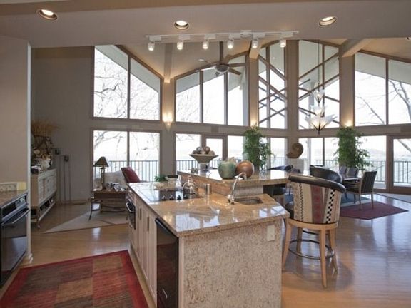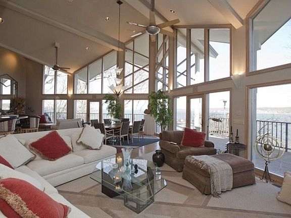 A striking design of glass and concrete w/ exceptional mainlake views, this custom designed and built home has charm, character and detail.From the custom made lighting fixtures to the soaring and angled windows this home is "over-the-top" gorgeous.Add $300,000 worth of custom made furniture and you have a bargin at $975,000. (originally 1,450,000) Includes the artwork. Hardwood floors, granite, workout rm, game rm w/ pool table and wet bar, hot tub on deck, firepit,each guest rm w/ private b...