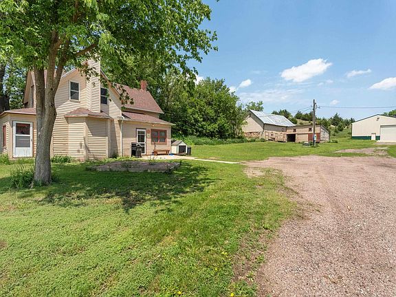 Come check out this wonderful acres opportunity! This 1 1/2 story home is located on 10 acres on the Volin Bluff, the property offers some great views of the Missouri River bottom. The home features 4 bedrooms, 1 full bath and main floor laundry. Main floor has a front enclosed porch, dining room with snap stone tile floor, gallery kitchen, living room features a wood burning fireplace and oak floors. Second floor has 3 bedrooms. The exterior features mature trees, vineyard and brick patio. Several outbuildings and a new 40 x 60 shed, insulated with cement floor!! Great shop area, garage, and large enough for your RV and boat!