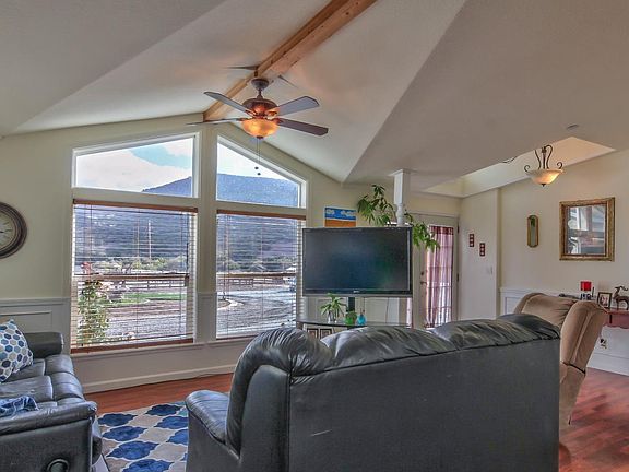 Beautiful 3 bedrooms 3 bath manufactured home in the Deer Creek Estate gated community. This single level home is light and bright, the floor plan is open and inviting. Open kitchen with granite counter tops, large island and small but cozy family room/office space. Set of patio doors lead to a lovely outdoor entertainment patio, wonderful spot to relax, dine, entertain and just unwind while taking in all the gorgeous views of the mountain. Living room has high, open beam ceilings with laminate wood floors. Over size detached 2 car garage. 30 acres of just beautiful mountain views. Horses allowed. Some personal items do not convey. Call L/A