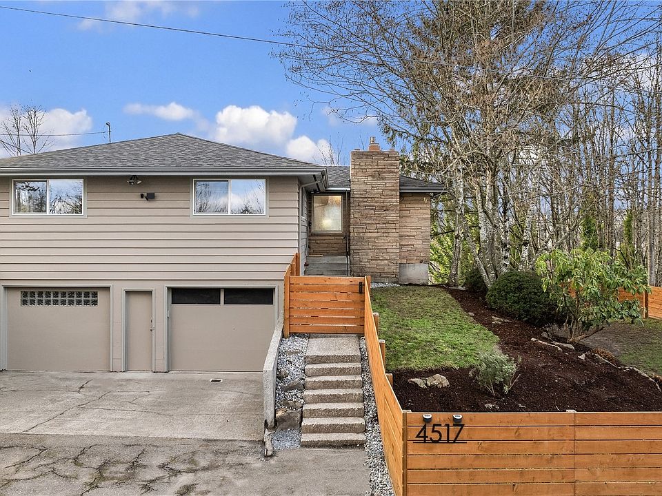 Brilliant Pigeon Point mid-century with peaceful territorial views! This thoughtfully updated home is deceptively large & features a host of contemporary amenities & systems. Huge picture windows grace the open-concept living & dining spaces that effortlessly flow onto a jaw-dropping chef’s kitchen. Two bedrooms including the primary with tiled ensuite bath & walk-in closet round out the main floor while the lower level has a spacious rec room, 3rd bedroom, generous utility/flex space & 1-car garage w/shop. Sited on an oversized 9,600 sf lot, enjoy quiet mornings sipping coffee listening to the birds from one of the 2 decks, or enjoy throwing the ball for your pup in the large fenced yard. Great West Seattle commuter location, welcome home!
