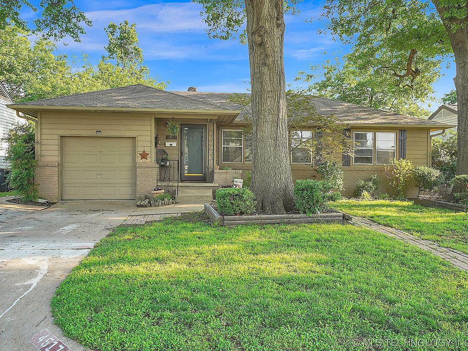 Darling midtown bungalow with hardwoods, 3 bed, 1 bath, large living, updated kitchen. Bathroom updated w/ granite, tile, new tub & sink. Beautiful mature trees. Established midtown neighborhood. Close to expressway access. Easy quick access to anywhere in Tulsa.