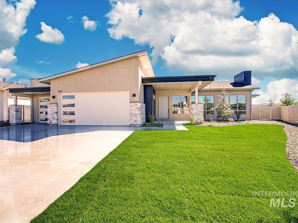 Welcome to this stunning single-level new construction home by ZEC, located in the highly sought-after Movado Estates community. This home features a mid-century modern design with vaulted ceilings, and a spacious 1044 sq/ft garage. As you enter, you'll be greeted by a large foyer that leads to the open and bright great room with vaulted ceilings. The kitchen boasts sleek cabinetry, stainless steel appliances, and beautiful quartz countertops. The luxurious master suite features a 10' beamed ceiling, a spacious walk-in closet, and a stunning master bathroom with a large soaking tub, walk-in shower, and dual vanities. The additional three bedrooms are spacious and feature 10' ceilings, 8' doors, and one jr. suite. The backyard has a huge covered patio, perfect for outdoor living and entertaining. Movado Estates offers paths, pool, and is located with easy freeway access.