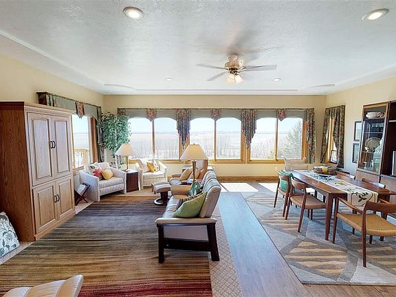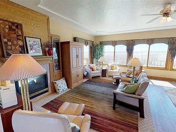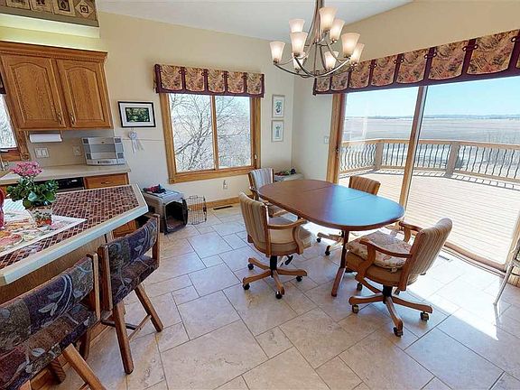 Magnificent custom home that sits high on the Missouri River Valley. Step out on the deck and experience a 180-degree view of South Dakota, Nebraska and Iowa. Each season has it's own splendid beauty viewed from this home! The main floor from the Kitchen to the Living Room to the Master Bedroom have been specifically designed to take advantage of the spectacular views. The spacious kitchen and large Living Room are perfectly designed for entertaining, but cozy enough for evenings by the fireplace with a good book. The Family Room downstairs has daylight windows and a walkout to the ample patio. The basement is like a second home featuring three bedrooms and TWO full baths. The Master Bath upstairs is one of the largest built in Vermillion with a large jetted tub, walk-in shower, walk-in closet and two vanities. There are three attached garage spaces, as well as a separate 12 x 16 storage shed with concrete floor and overhead garage door.