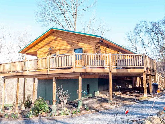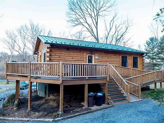 Situated in Page County VA this home offers you river frontage with a relaxing view from the house and the raised deck. This log home features an open floor plan with the kitchen-dining room and living room all being open to each other. There are also two bedrooms and a bath. The house has a large wrap around deck with a handicap ramp at the rear of the home. The land is river front property with some private wooded property to the rear of the house. This home has been used as a vacation rental with an excellent rental history. Come see this property to enjoy the river and to start your own memories. You can block out the time that you want to use the home while letting other rent the off time to help to pay for your quiet get-a-way.