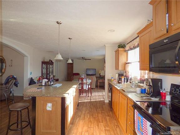 Absolutely beautiful setting! Enjoy the morning on the covered front porch complete with ceiling fan or on the back deck overlooking the backyard with trees surrounding the property! FULLY FENCED property! 3 outbuildings each with electricity. Even the hook up your RV. Over 3 acres offering privacy and country feel yet easy drive to shopping, schools, restaurants... Easy access to HWY 16; makes an easy commute to Charlotte or Hickory! Home has been meticulously maintained. Split bedroom open floor plan. Spacious living room, Huge master bedroom with ensuite bath. Spacious kitchen with enormous center island, tons of cabinet and counter space opens to dining room and family rooms! 2 secondary bedrooms complete this well thought out home!
