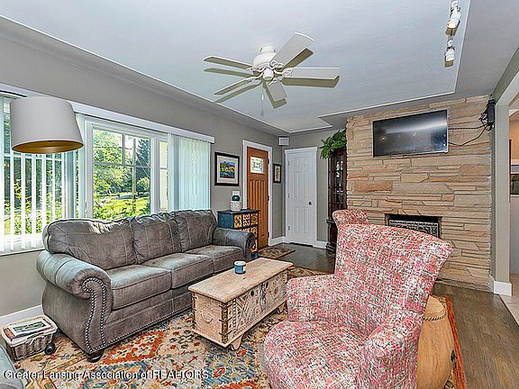 This home will fly off the market so don't wait A rare find on almost a half acre lot in popular Forest Hills, the fully updated ranch also offers a 2 car attached garage, extra parking in the drive, a 2.5 car detached garage plus a storage shed and a fully fenced, private rear yard The low maintenance vinyl and brick sided home welcomes you in from the covered front porch into the living room, where you will delight in the open concept of the remodeled living areas. The living room features refinished hardwood flooring, a raised hearth fireplace, ceiling fan and a TV mount that remains. The open concept with the dining area and the kitchen makes for wonderful entertaining.