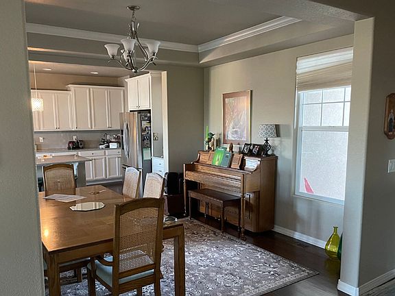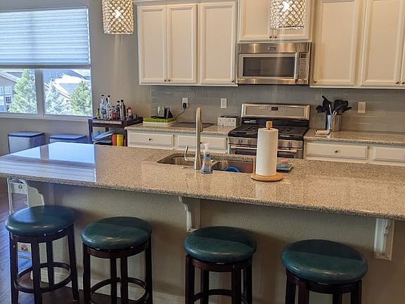 Make your home in this pristine single family, 3890 SQ ft Campbell Homes' Carnegie model. The main level has stunning hardwood floors, a spacious living room with 12' ceilings and a welcoming gas fireplace, and delightful natural lighting from south-facing large windows in the living room. Enjoy cooking, and entertaining in the open kitchen with granite countertops, stainless steel appliances, gas stove, soft-close cabinets, and large pantry. Use the eat-in dining area adjacent to the stone patio, or the formal dining room for your scrumptious meals. Relish the spacious primary retreat with its large windows facing south overlooking open space, and the primary bathroom featuring a beautiful 6' soaking tub, double sink vanity, and twin walk-in closets. With a total of 4 bedrooms, 3 baths, 9' basement ceilings, you'll have plenty of space to live and play. The house is divided up nicely with 2 bedrooms on the main level and 2 in the basement. The laundry room is on the main level and comes with washer/dryer. The home includes central A/C and extra large storage space in the basement. Lot includes a fenced back yard with mountain views to the west, open space to the east, connecting community trail within ~30 yards, and beautiful landscaping with lots of flowers. Located close to parks, walking trails, D20 schools, shopping, and hospitals. Rent includes trash and access to the Cordera clubhouse, pool, and fitness center. 6-12 month lease available. 1. A prospective tenant has the right to provide to the landlord a portable tenant screening report, as defined in section 38-12-902(2.5), Colorado Revised Statutes; and 2. If a prospective tenant provides the landlord with a portable tenant screening report, the landlord is prohibited from: Charging the prospective tenant a rental application fee; or Charging the prospective tenant a fee for the landlord to access or use the portable tenant screening report