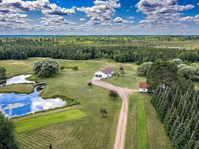 Location, land, seclusion, nature, wildlife, pond....its all right here! 1990 quality- built home (Mike Hartman) is nestled on 70 acres of land. The home features an open concept kitchen and dining area with updated appliances, new lighting and tile backsplash. The living room picture window frames in the view of a weeping willow tree, pond and osprey nest. Main floor also features a master bedroom suite, 2 spacious bedrooms, full bath and laundry. The lower level features a family room, additional kitchen, bedroom (septic sized for 3 bedroom) and utility room. It will be hard for this family to leave their home. They enjoy all the wildlife including the Sandhill cranes & ducks, trails throughout, apple trees, blackberry bushes and a beaver pond to the back of property. In addition, there is a 30 x 40 garage to store your toys.