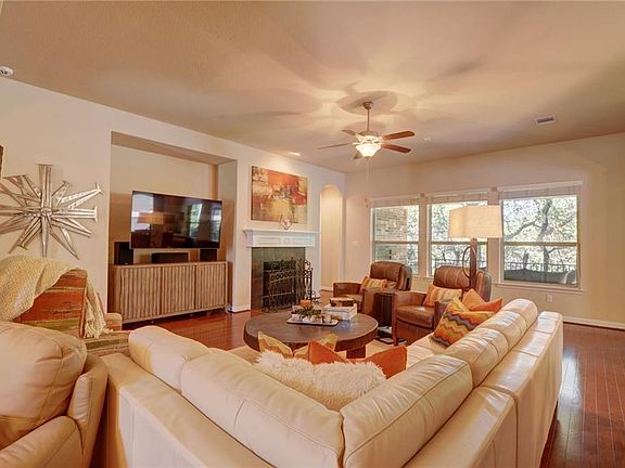 Absolutely charming home on a quiet cul-de-sac. Gleaming wood floors, windows galore. Office could be 4th bdrm. Beautifully maintained home with decorative touches. Huge covered back porch perfect for entertaining or as a play area. Lush & treed greenbelt in back. Dream kitchen w/granite, gas stovetop, SS appl. Great open floorplan, split bedrooms,, lux master suite w/garden tub & separate shower. Each bedroom has a walk-in-closet. Fabulous landscaping in front & back. Great neighborhood & low taxes.